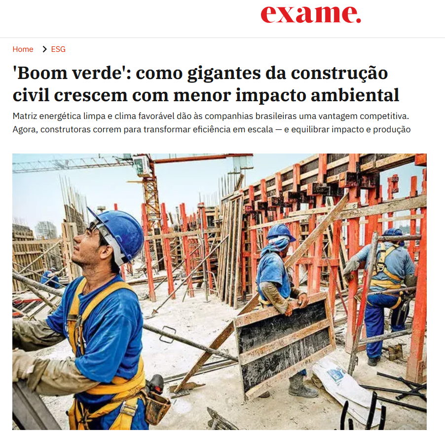 A ABRAINC e empresas associadas foram destaque em reportagem da revista Exame sobre o avanço da agenda de sustentabilidade na construção civil brasileira. A matéria mostra como grandes incorporadoras vêm conciliando crescimento do setor com redução de impacto ambiental e maior eficiência no uso de recursos.
