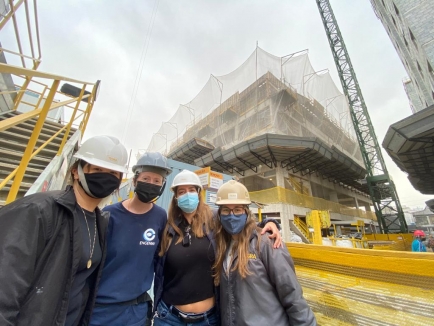 Camila Teixeira, engenheira; Ellen Priscila Olofo, eletricista; Patricia Domingues, Diretora Executiva de Construção, e Ana Beatriz Cardoso, estagiária - Obra TEG Vila Guilherme-/caption-Para combater o machismo no ambiente de trabalho, a Diretora Executiva de Construção e Sustentabilidade da Tegra Incorporadora diz que o “empoderamento, o conhecimento e competência, o lado humano mais aflorado e a capacidade gerencial das mulheres derrubará o machismo. Regras ajudam, mas a conquista da mulher por seu espaço é que dará perenidade e força neste processo”.