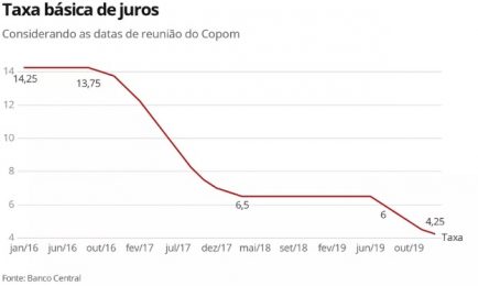 A medida já era esperada pelo mercado financeiro. Na semana passada, os analistas consultados pelo boletim Focus (pesquisa semanal do Banco Central) estimaram que a taxa Selic fosse reduzida para 4,25% a.a. e mantida assim ao longo do ano. A expectativa é que ela só volte a subir em 2021.