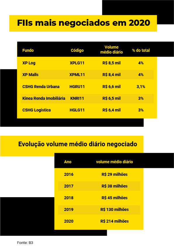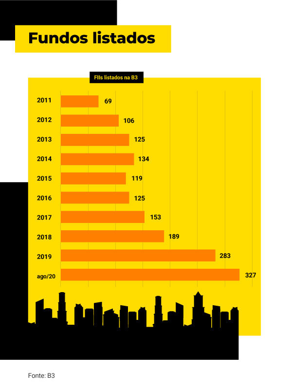 A indústria de fundos imobiliários na Bolsa responde hoje por um mercado de R$ 105 bilhões, com um volume médio diário negociado, no ano, de R$ 214 milhões. São mais de 480 fundos imobiliários, dos quais 327 listados na B3.